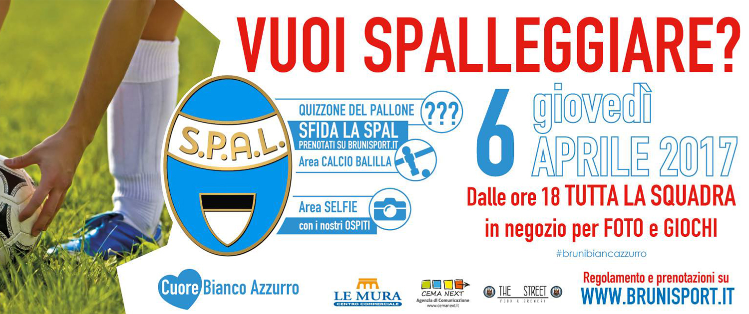 E’ questo il caso dell’evento BRUNI SPORT <3 SPAL : Gioca con Noi. Una giornata, quella di giovedì 6 Aprile, tutta dedicata alla capolista biancoazzurra e ai suoi sostenitori, ed in cui anche noi saremo protagonisti, in veste di sponsor e di organizzatori dell’evento.
